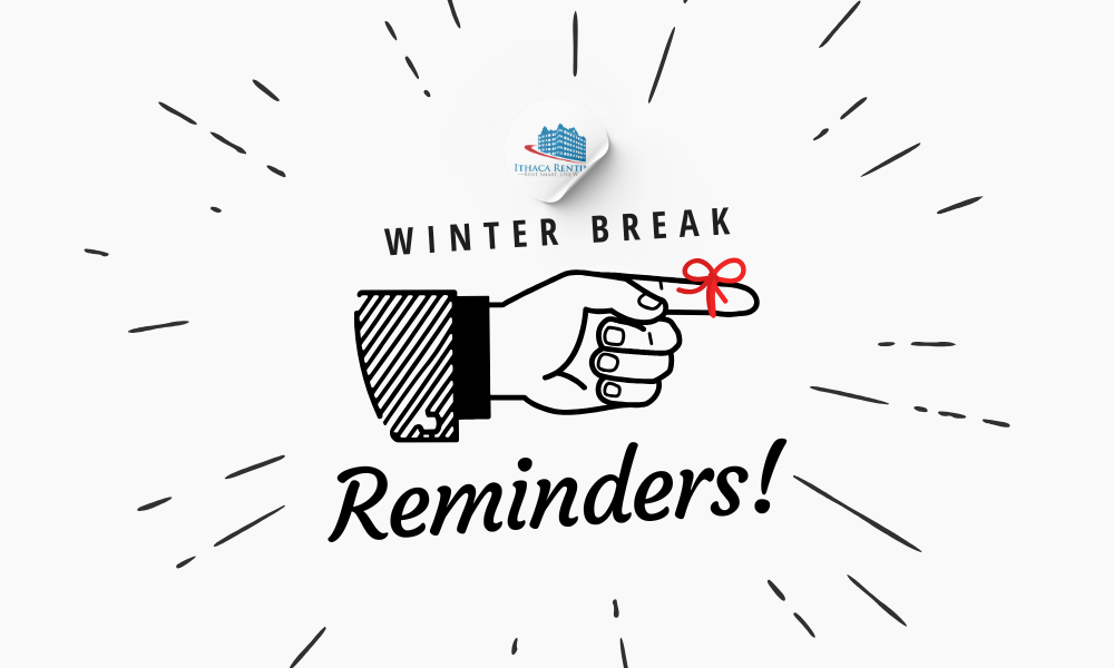 GENERAL MAINTENANCE: The maintenance staff will be working over the break. You can call or email your maintenance requests as usual. 607-277-0179, or maintenance@ithacarenting.com
